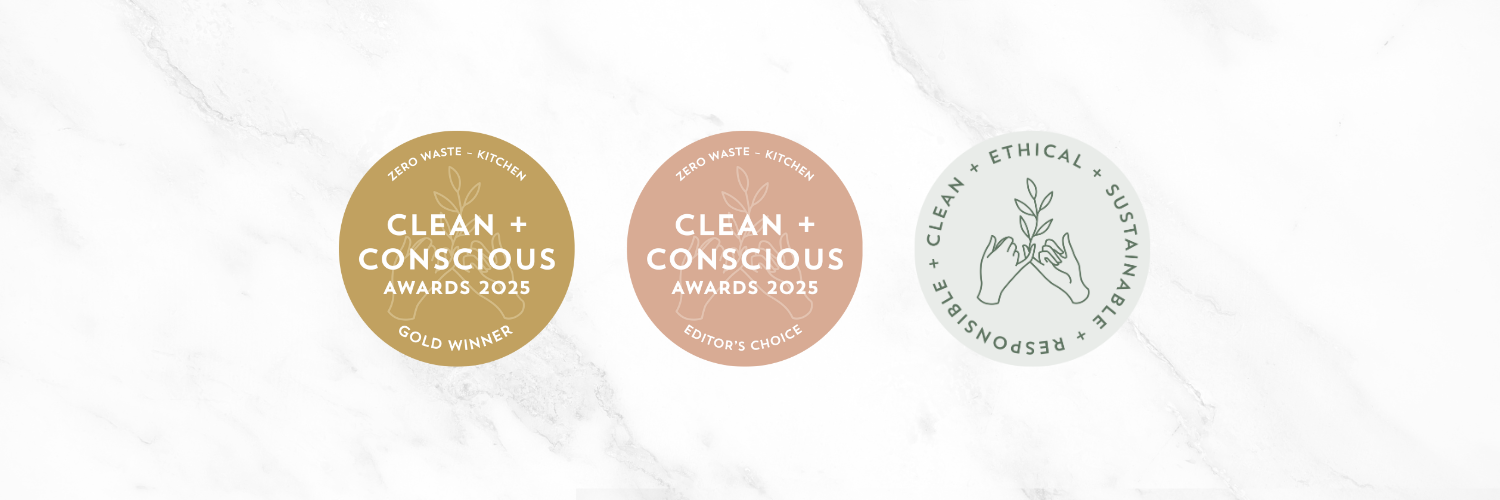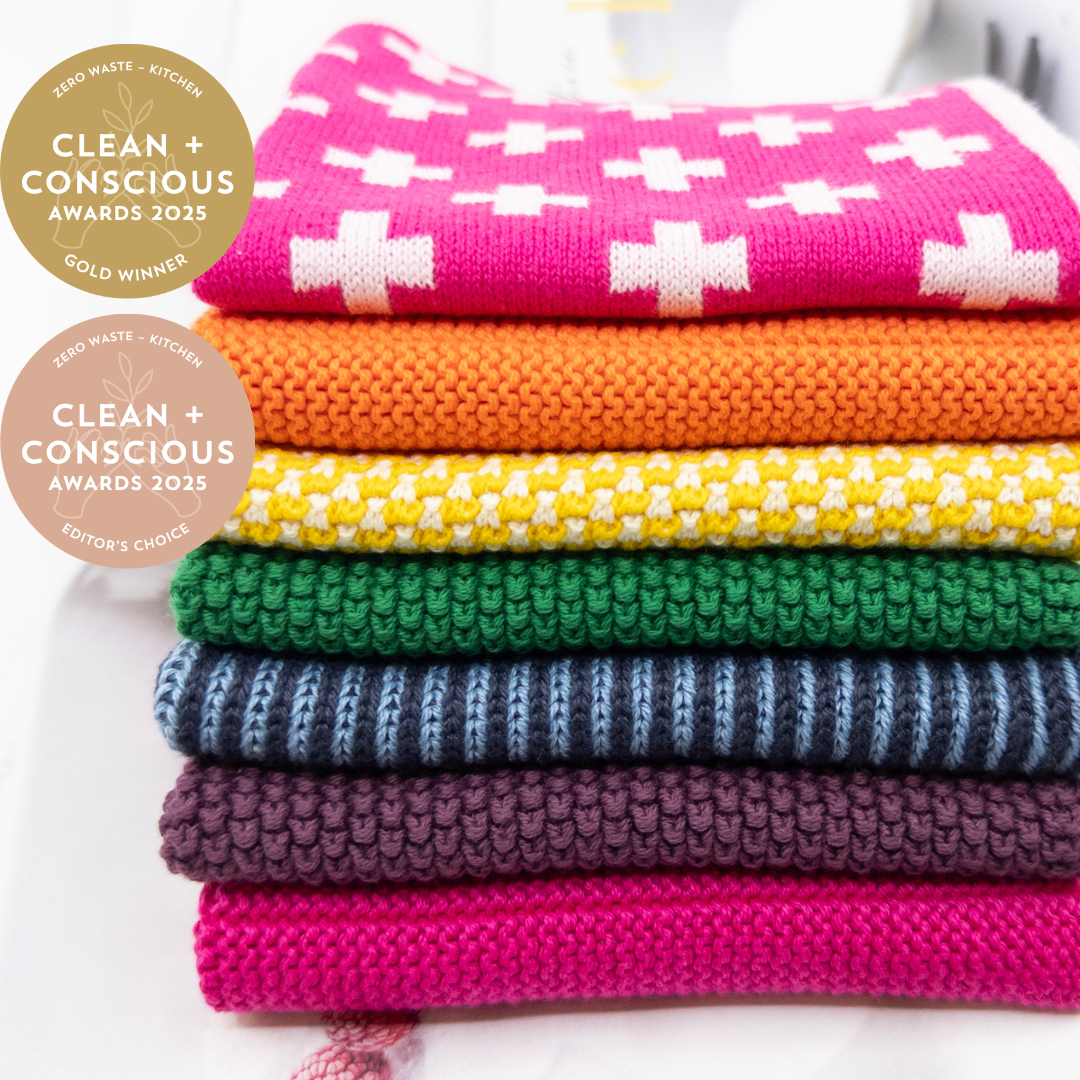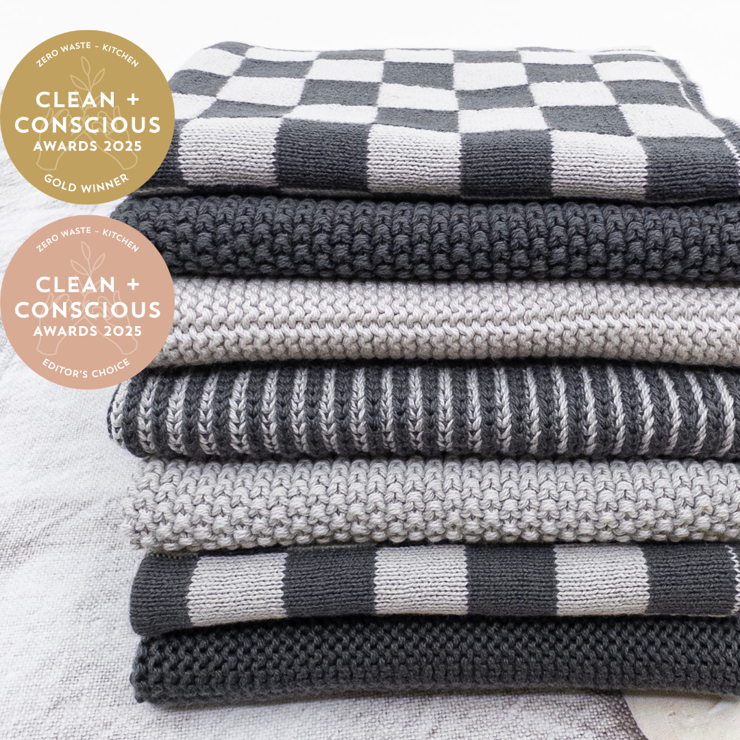 We’re thrilled to share that our Daily Use 7-Pack Dishcloths have been named Winner in the Clean + Conscious Awards 2025 – Zero Waste Kitchen and received an Editor’s Choice Award too.