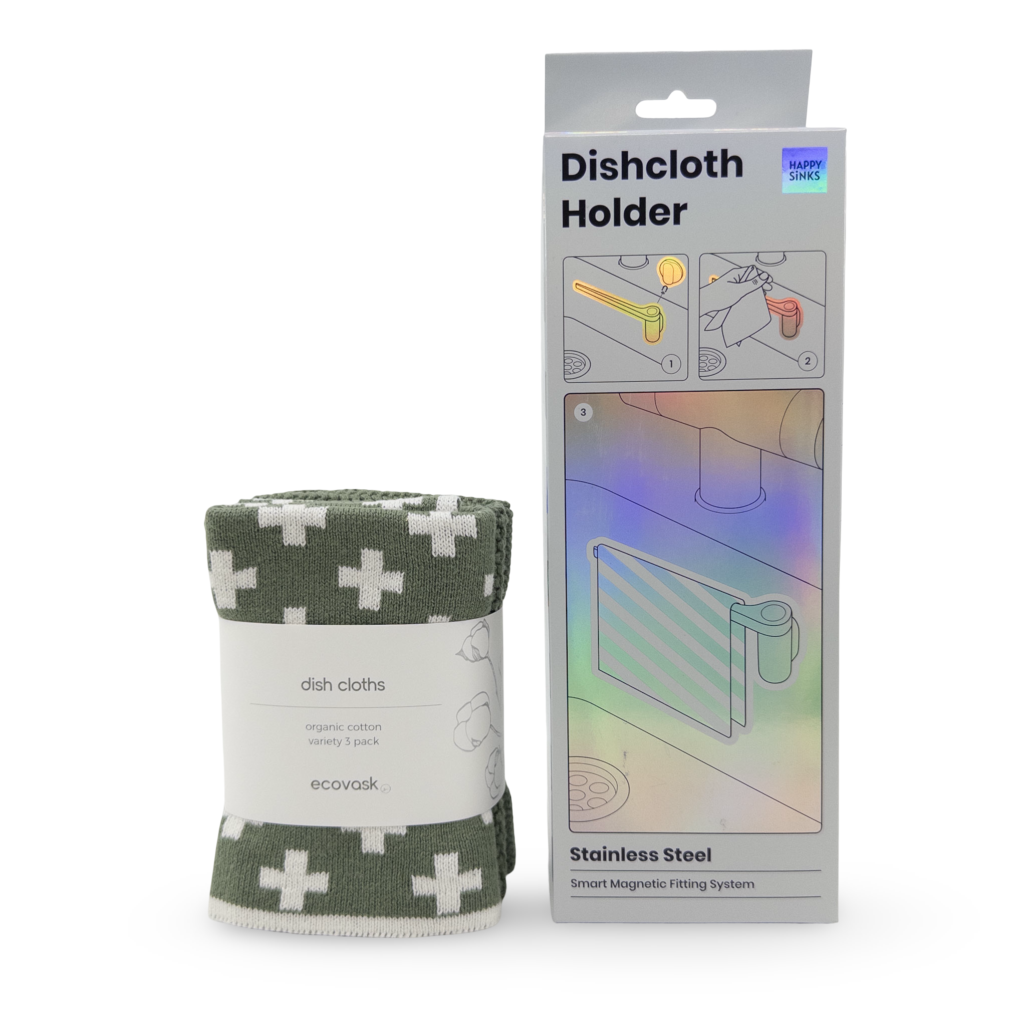 Happy Sinks Dishcloth Holder + Dishcloth Variety 3pk