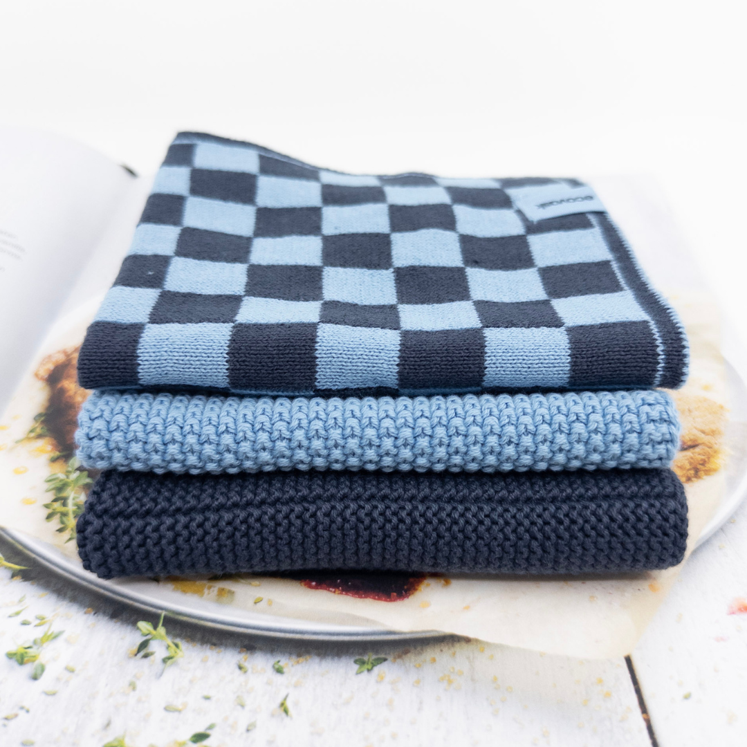 Dishcloth Variety 3pk - Cornflower Navy Chequer