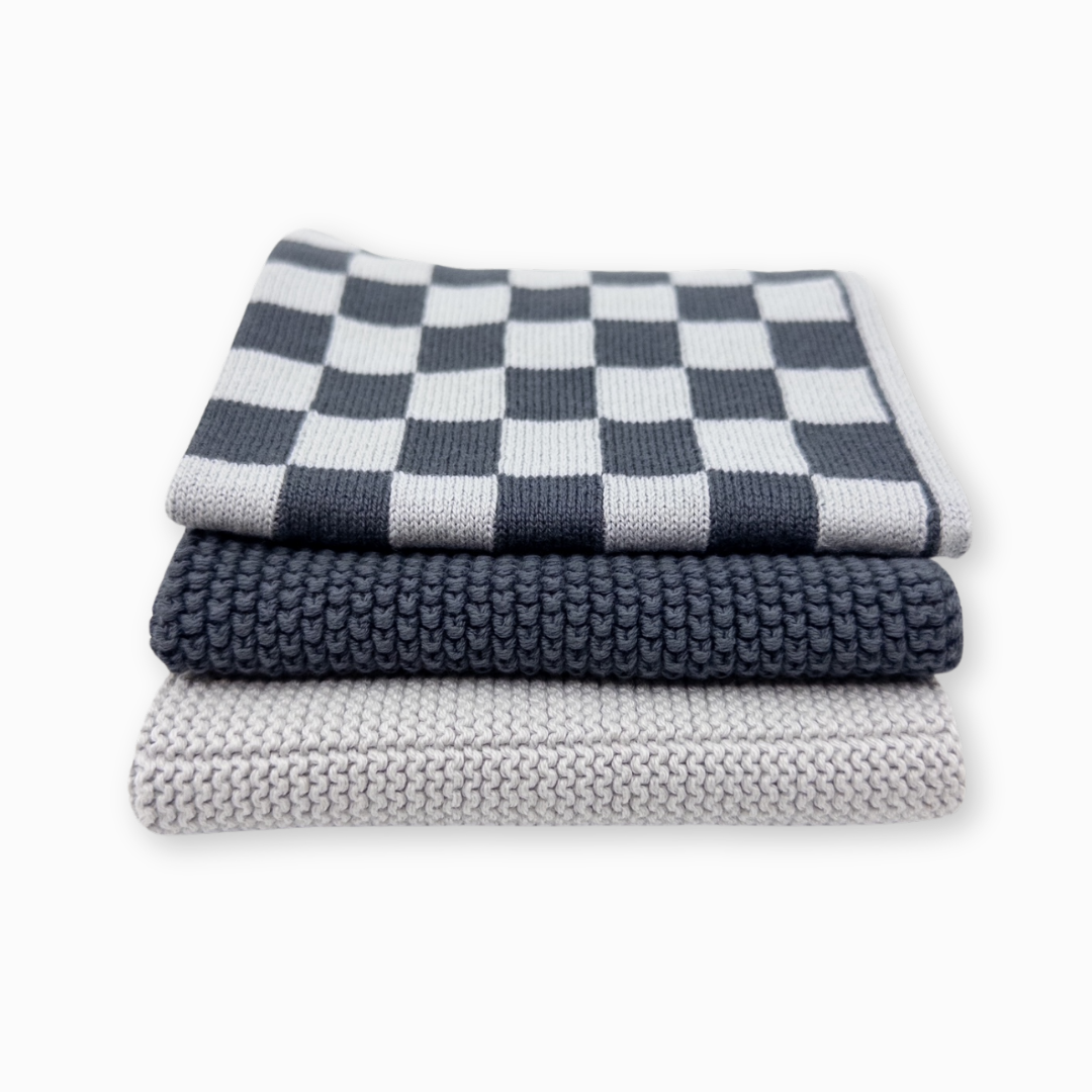 Dishcloth Variety 3pk - Graphite Lunar Chequer