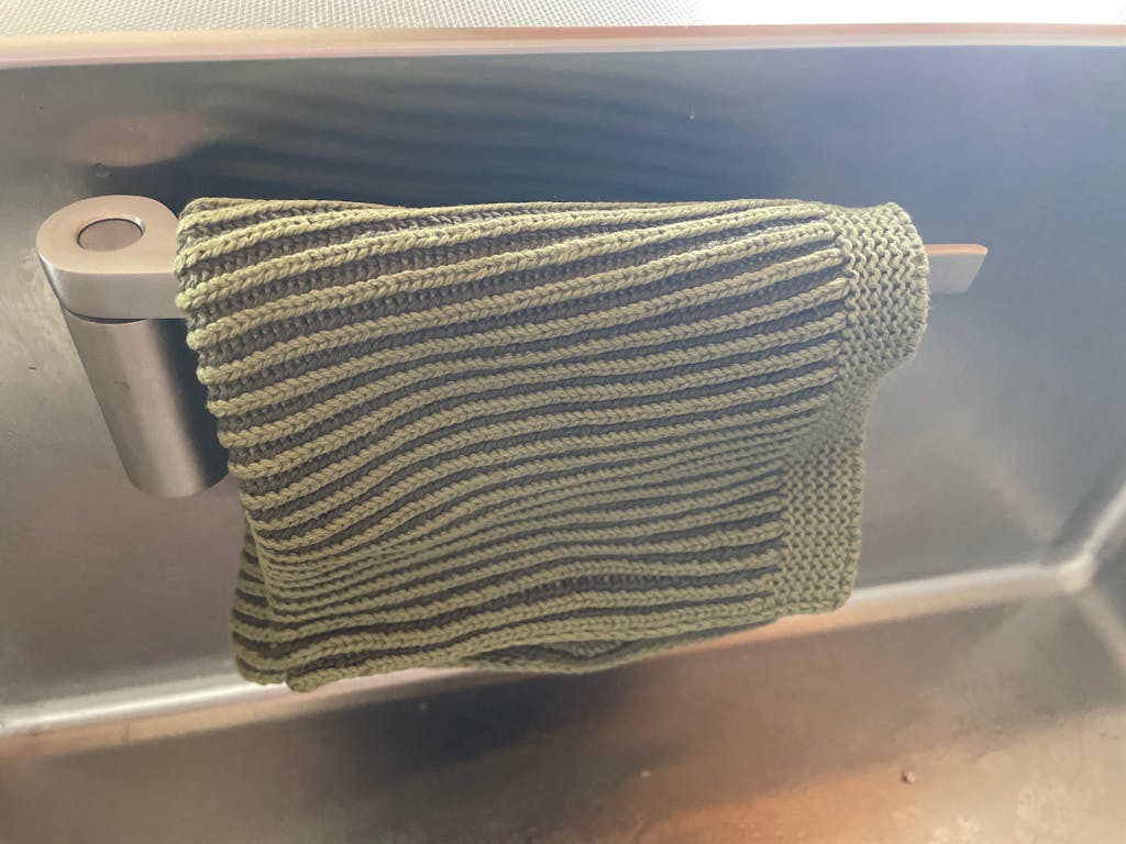 • Between uses: Rinse thoroughly and hang to dry - over your tap works well or if you're not a fan of this, the Happy Sinks Magnetic Dishcloth Holder or Wunderbar products are great options to keep things tidy and airy. Never stash wet cloths in a cupboard, or a drawer.