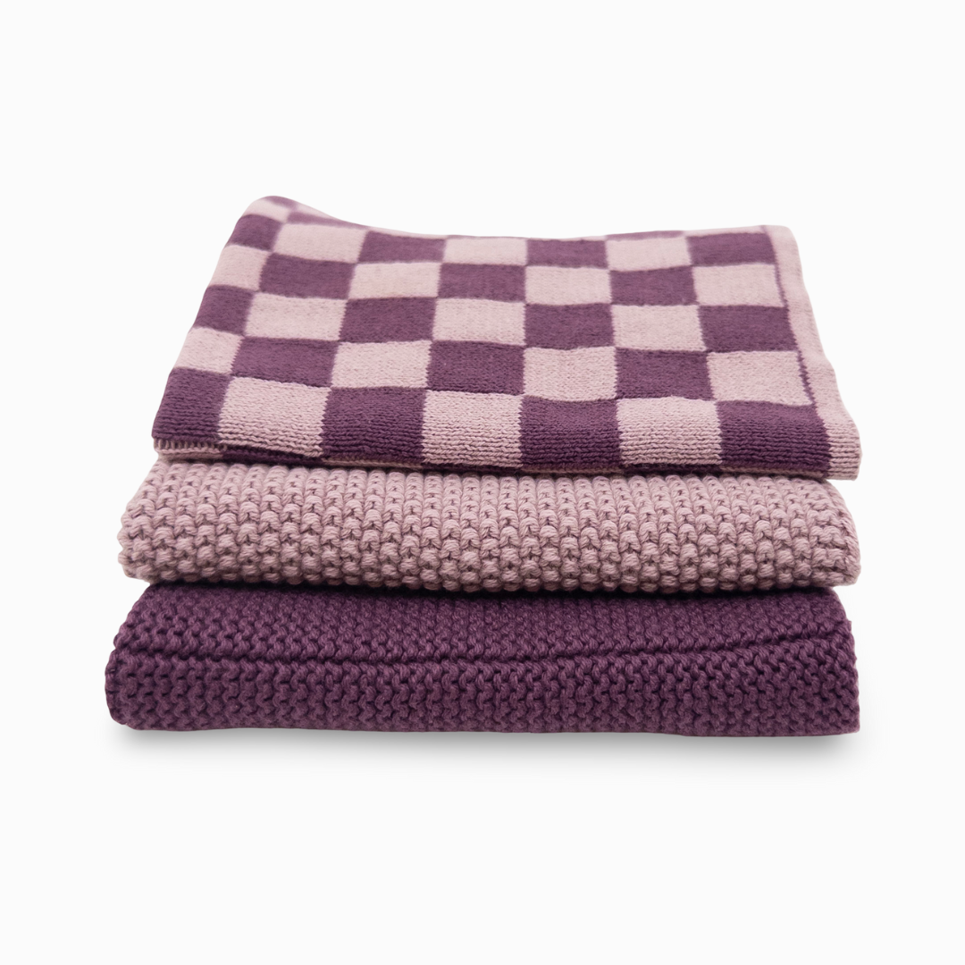 Dishcloth Variety 3pk - Grape Orchid Chequer