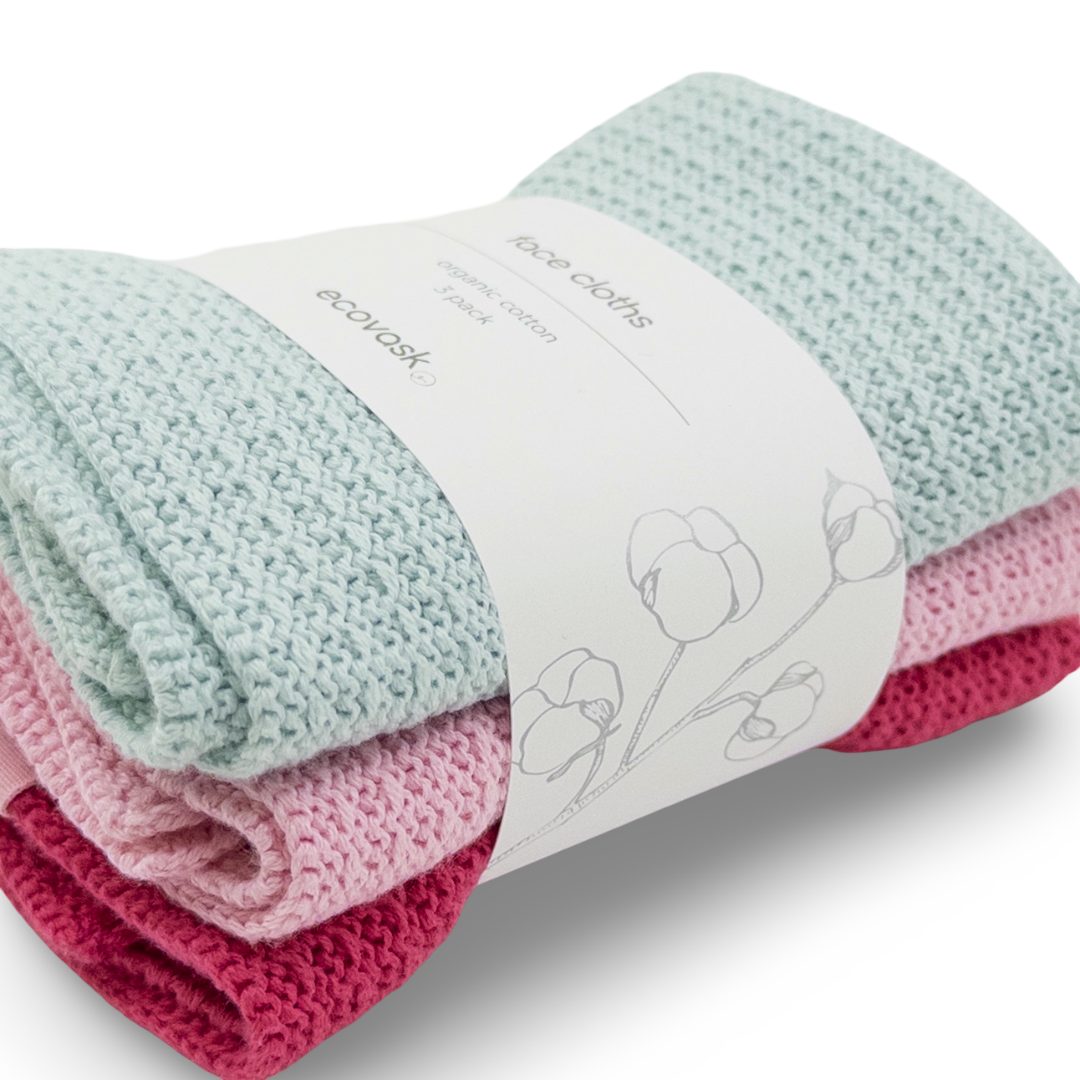 Because one is never enough. Our 3pk of soft, organic cotton facecloths is perfect for your daily skincare routine, wiping little faces, or keeping handy in the bathroom.